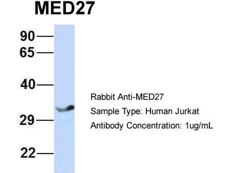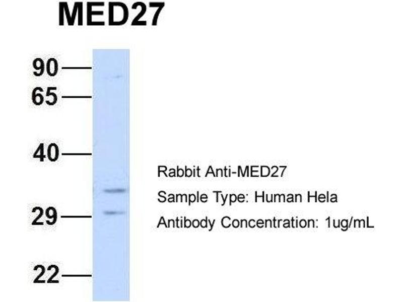 - This is a rabbit polyclonal antibody against MED27. It was validated on Western Blot using a cell lysate as a positive control.