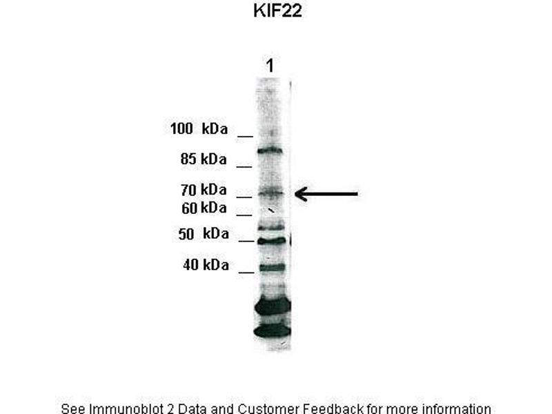 - This is a rabbit polyclonal antibody against KIF22. It was validated on Western Blot using a cell lysate as a positive control.