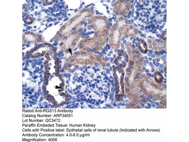- This is a rabbit polyclonal antibody against RGS13. It was validated on Western Blot and immunohistochemistry.