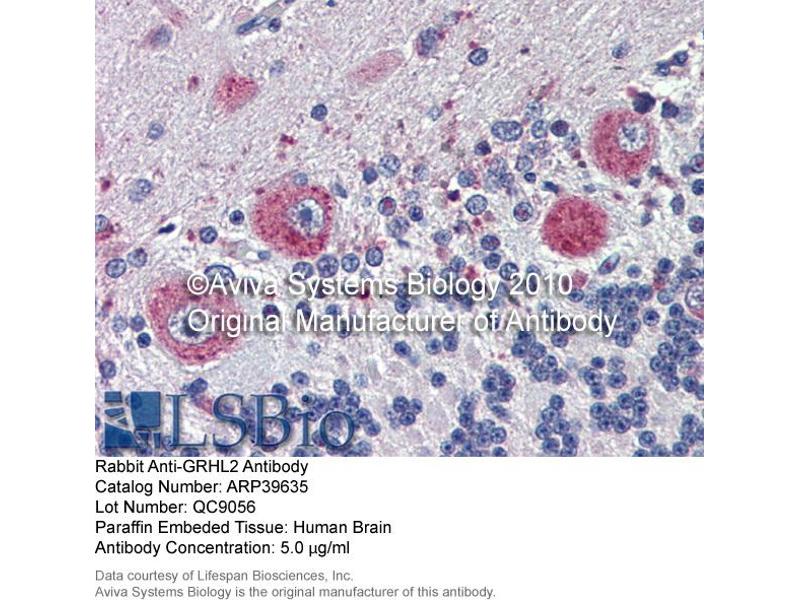 - The immunogen is a synthetic peptide directed towards the middle region of human GRHL2