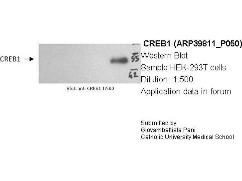 - The immunogen is a synthetic peptide directed towards the middle region of human CREB1