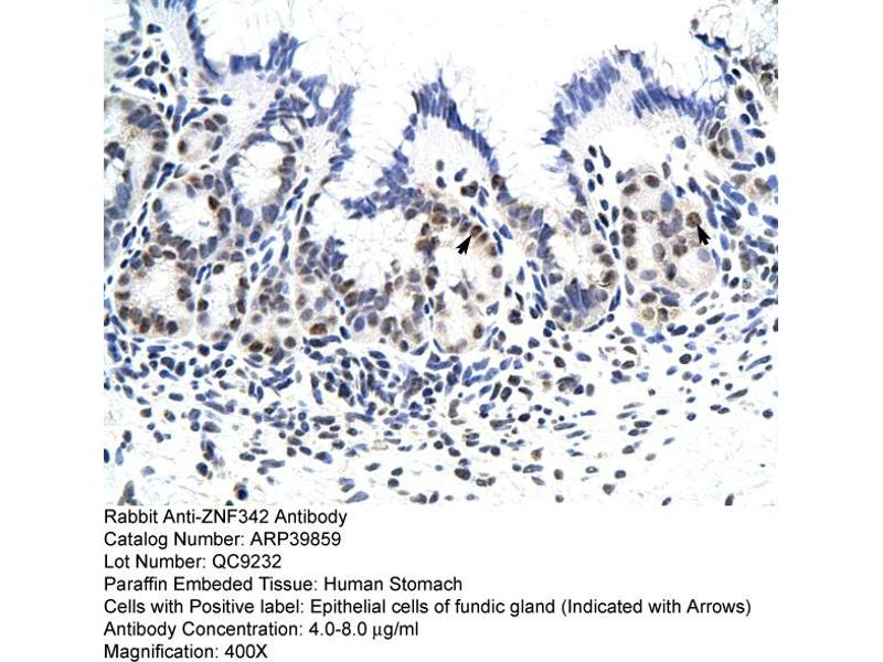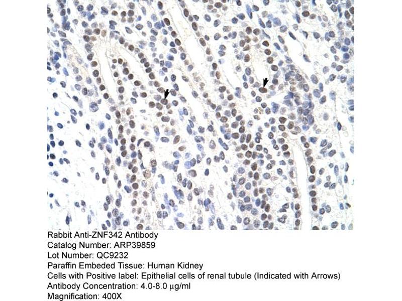 - This is a rabbit polyclonal antibody against ZNF342. It was validated on Western Blot and immunohistochemistry.