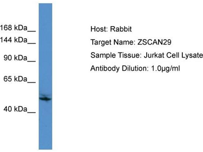 ZSCAN29 may be involved in transcriptional regulation. Protein Interaction Partner: UBC, Protein Size: 463