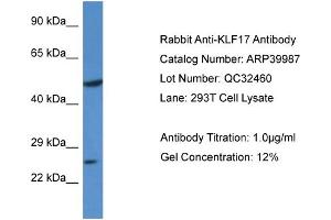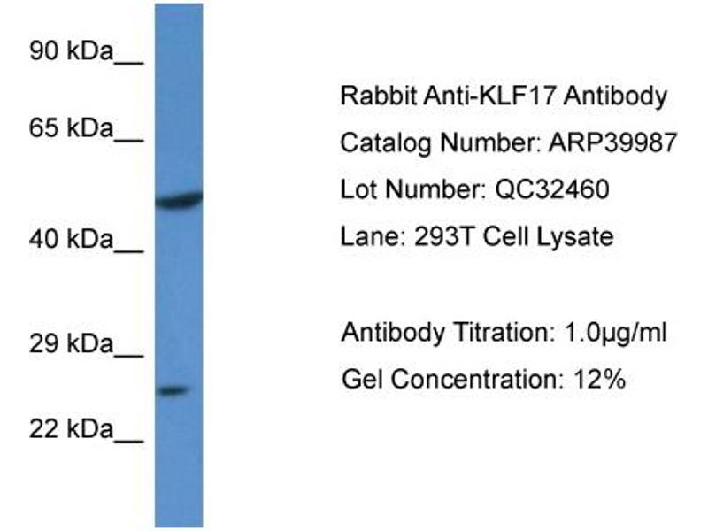- This is a rabbit polyclonal antibody against KLF17. It was validated on Western Blot.