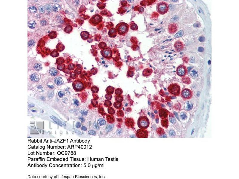 - The immunogen is a synthetic peptide directed towards the C terminal region of human JAZF1