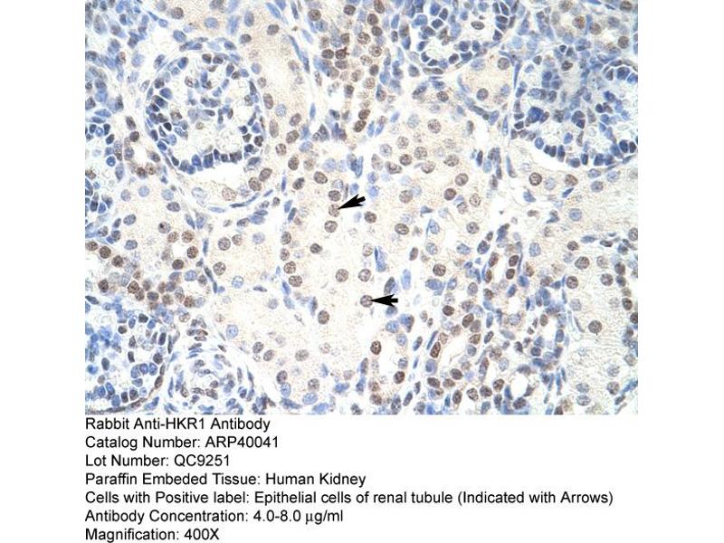 - This is a rabbit polyclonal antibody against HKR1. It was validated on Western Blot and immunohistochemistry.