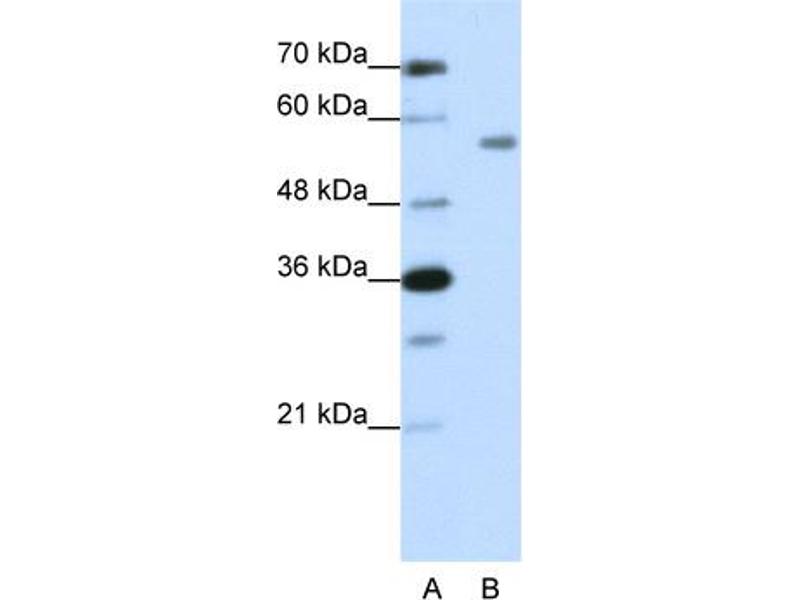 - The immunogen is a synthetic peptide directed towards the N terminal region of human ZNF497