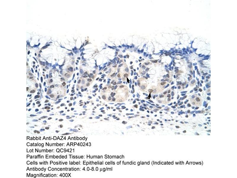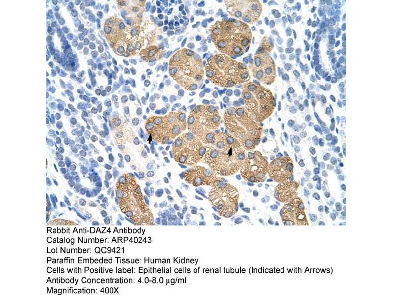 - This is a rabbit polyclonal antibody against DAZ4. It was validated on Western Blot and immunohistochemistry.