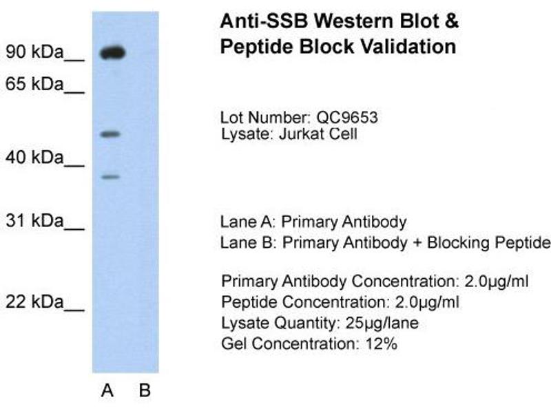 - This is a rabbit polyclonal antibody against SSB. It was validated on Western Blot and immunohistochemistry.