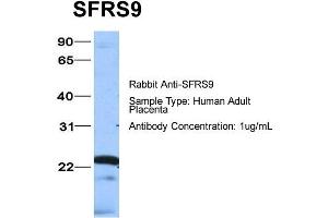 - This is a rabbit polyclonal antibody against SFRS9. It was validated on Western Blot using a cell lysate as a positive control.