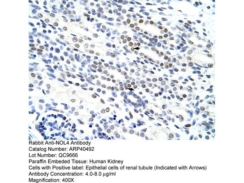 - This is a rabbit polyclonal antibody against NOL4. It was validated on Western Blot and immunohistochemistry.