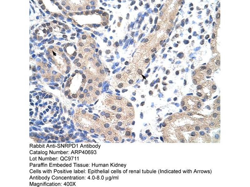 - This is a rabbit polyclonal antibody against SNRPD1. It was validated on Western Blot and immunohistochemistry.