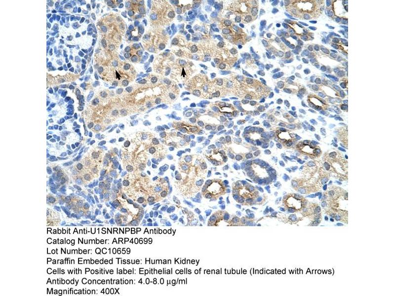 - This is a rabbit polyclonal antibody against U1SNRNPBP. It was validated on Western Blot and immunohistochemistry.