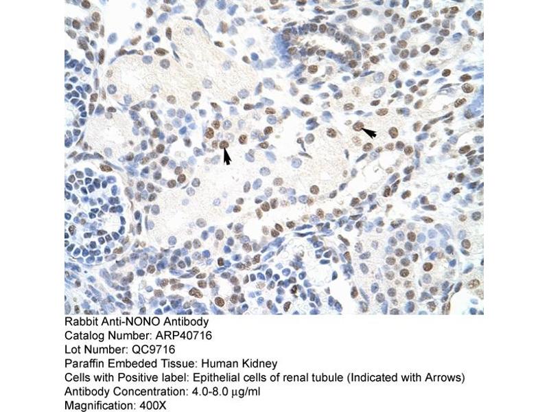 - This is a rabbit polyclonal antibody against NONO. It was validated on Western Blot and immunohistochemistry.
