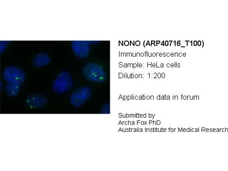 - The immunogen is a synthetic peptide directed towards the C terminal region of human NONO