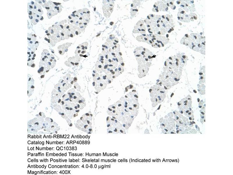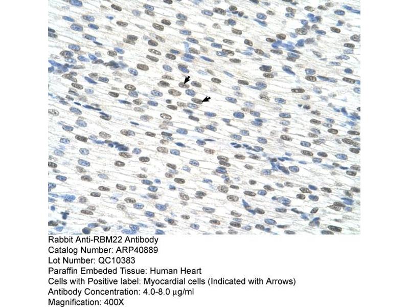 - This is a rabbit polyclonal antibody against RBM22. It was validated on Western Blot and immunohistochemistry.