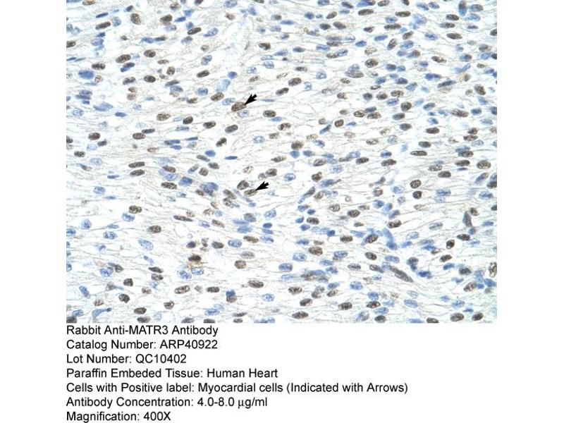 - This is a rabbit polyclonal antibody against MATR3. It was validated on Western Blot and immunohistochemistry.