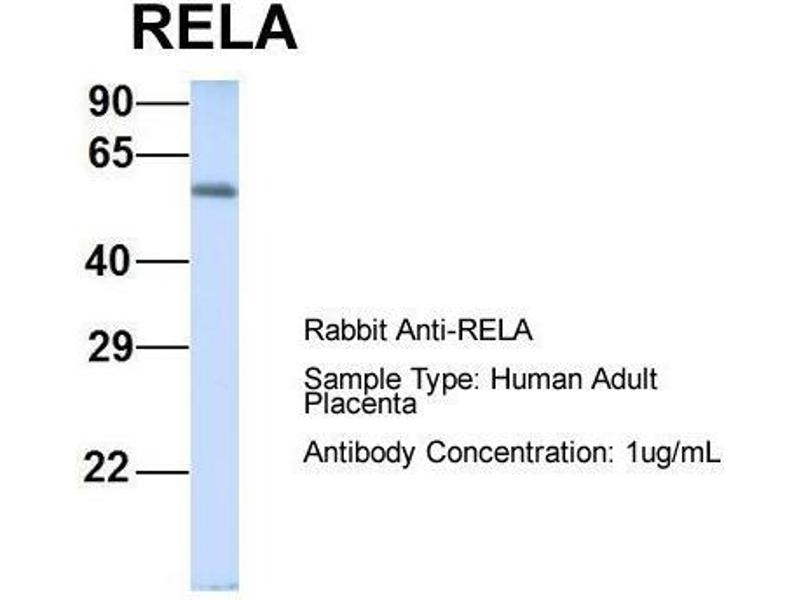 - This is a rabbit polyclonal antibody against RELA. It was validated on Western Blot using a cell lysate as a positive control.