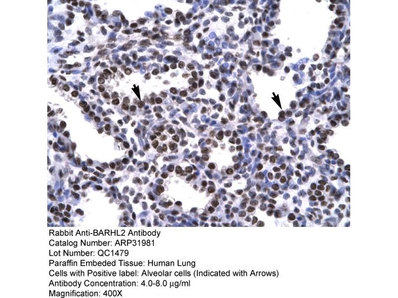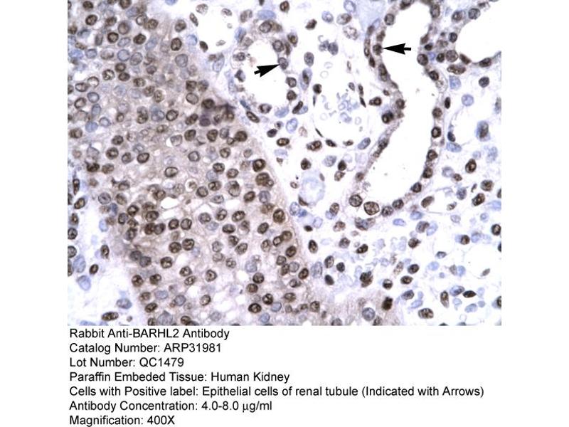 - This is a rabbit polyclonal antibody against BARHL2. It was validated on Western Blot and immunohistochemistry.