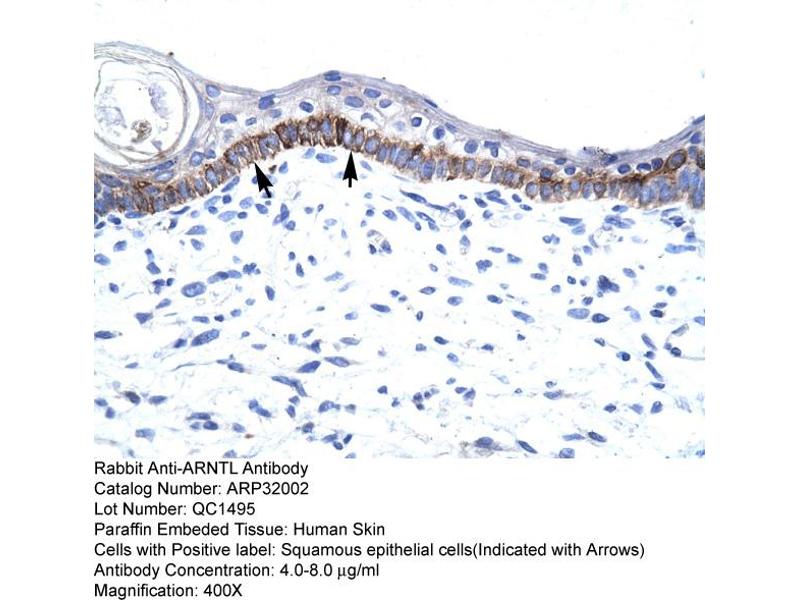 - The immunogen is a synthetic peptide directed towards the N terminal region of human ARNTL