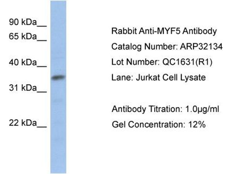 - This is a rabbit polyclonal antibody against MYF5. It was validated on Western Blot using a cell lysate as a positive control.