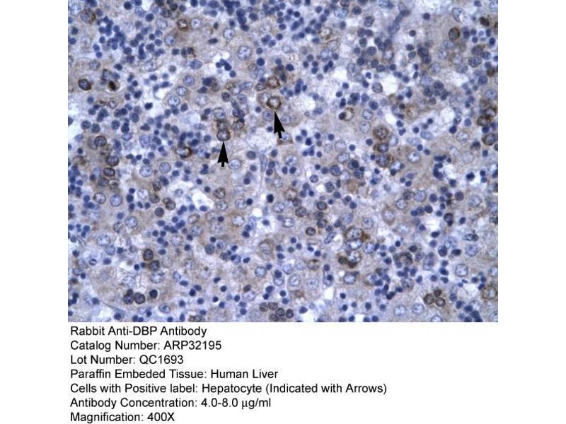 - This is a rabbit polyclonal antibody against DBP. It was validated on Western Blot and immunohistochemistry.