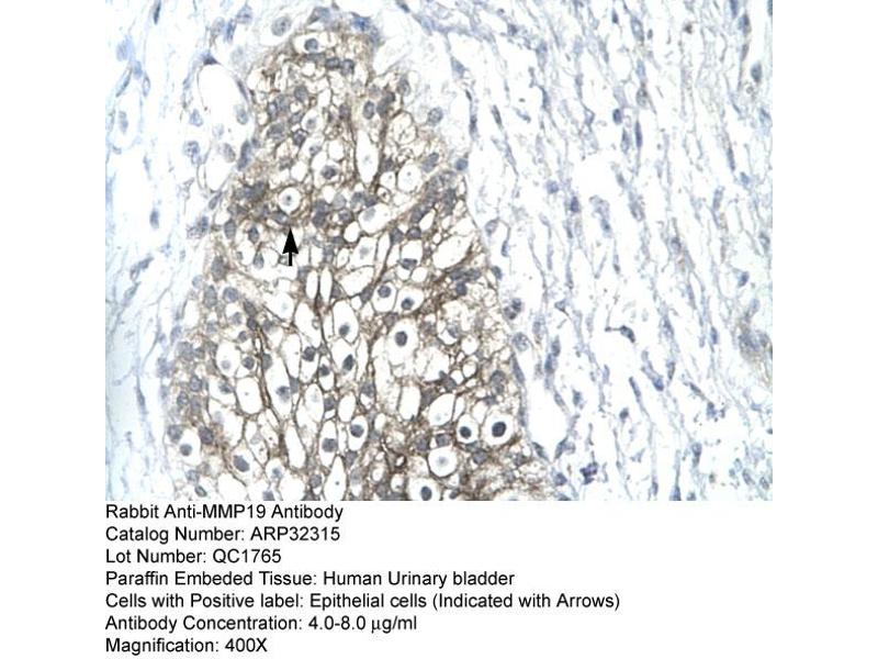 - This is a rabbit polyclonal antibody against MMP19. It was validated on Western Blot and immunohistochemistry.