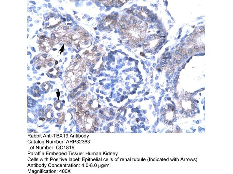 - This is a rabbit polyclonal antibody against TBX19. It was validated on Western Blot and immunohistochemistry.