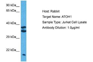 - This is a rabbit polyclonal antibody against ATOH1. It was validated on Western Blot using a cell lysate as a positive control.