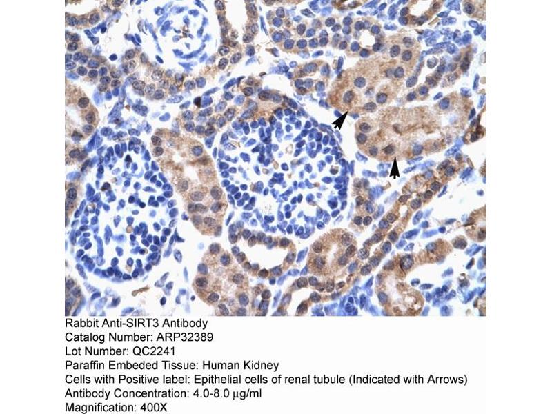 - The immunogen is a synthetic peptide directed towards the C terminal region of human SIRT3