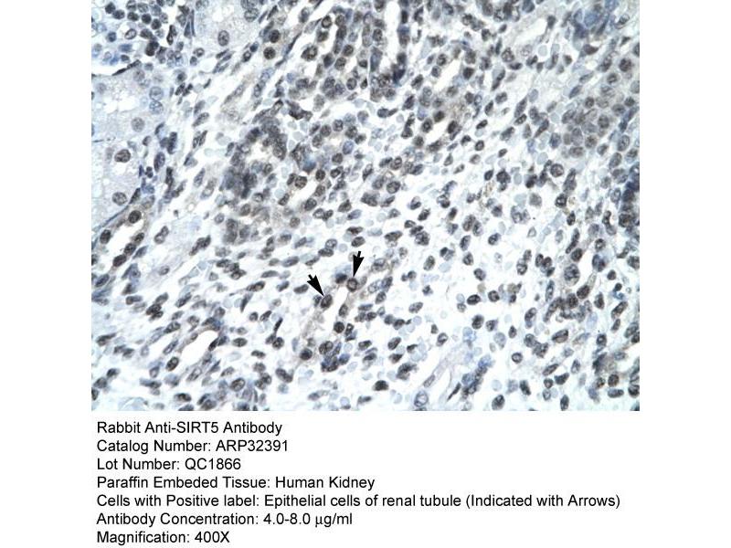 - This is a rabbit polyclonal antibody against SIRT5. It was validated on Western Blot and immunohistochemistry.