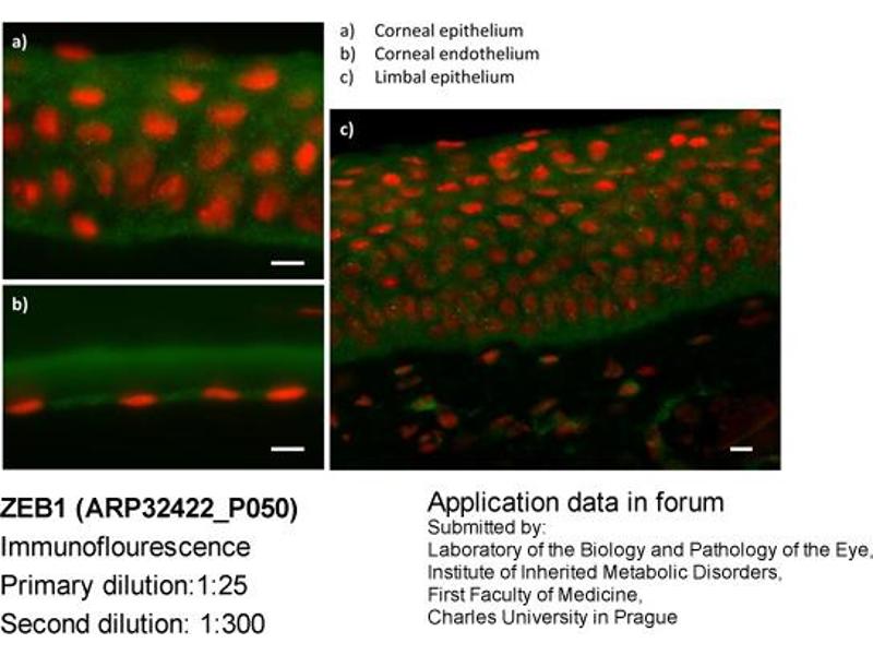 - The immunogen is a synthetic peptide directed towards the N terminal region of human ZEB1
