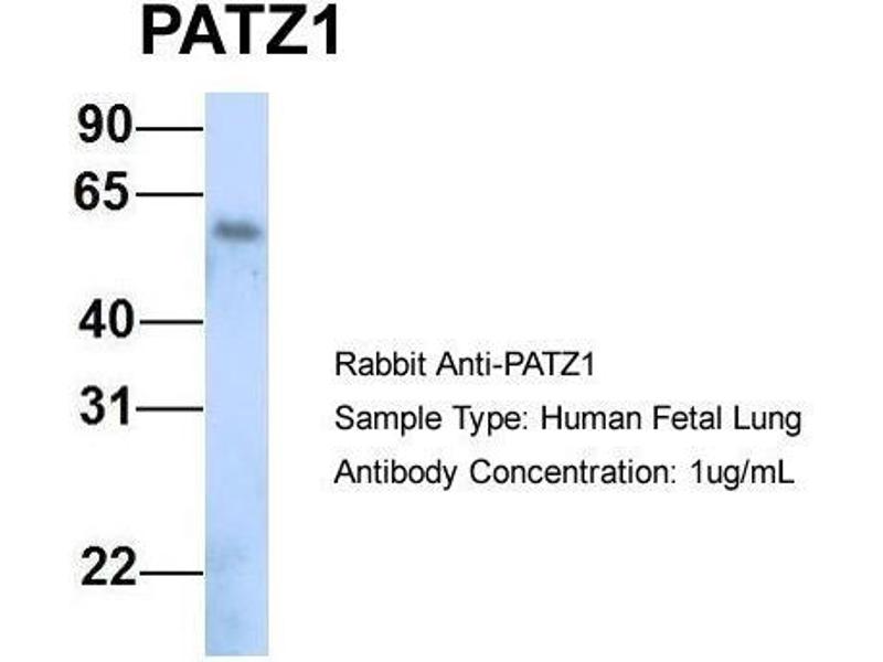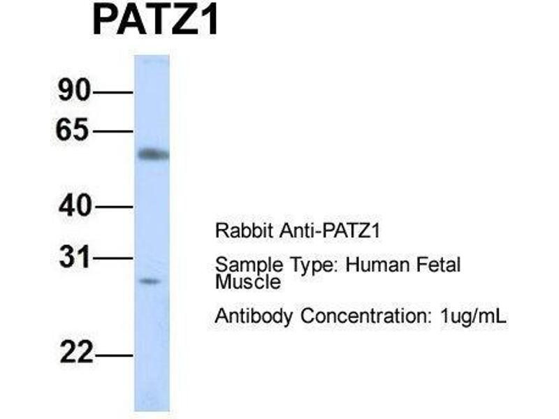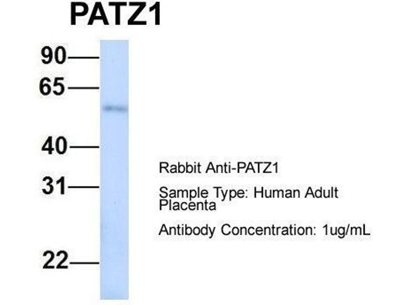 - This is a rabbit polyclonal antibody against PATZ1. It was validated on Western Blot using a cell lysate as a positive control.