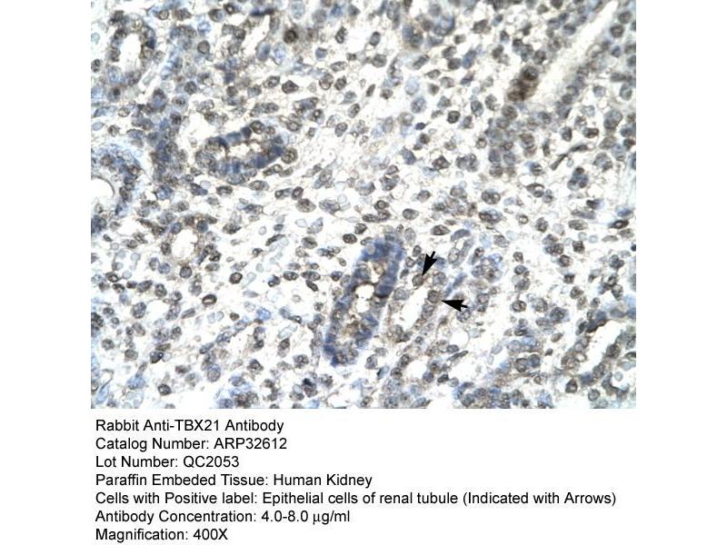 - The immunogen is a synthetic peptide directed towards the middle region of human TBX21