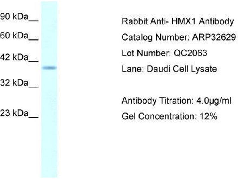 - This is a rabbit polyclonal antibody against HMX1. It was validated on Western Blot using a cell lysate as a positive control.