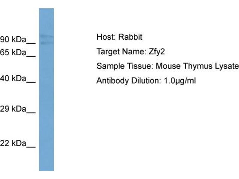 This is a rabbit polyclonal antibody against Zfy2. It was validated on Western Blot.