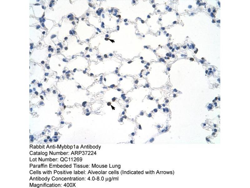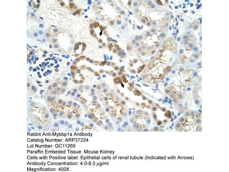 - The immunogen is a synthetic peptide directed towards the C terminal region of mouse MYBBP1A