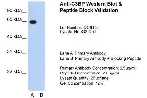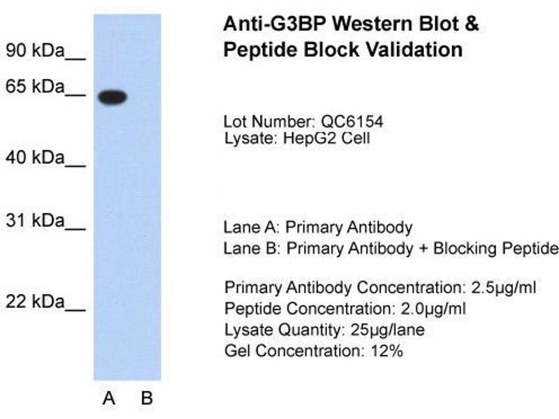 - This is a rabbit polyclonal antibody against G3BP. It was validated on Western Blot using a cell lysate as a positive control.