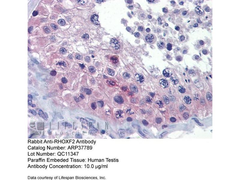 - The immunogen is a synthetic peptide directed towards the middle region of human RHOXF2