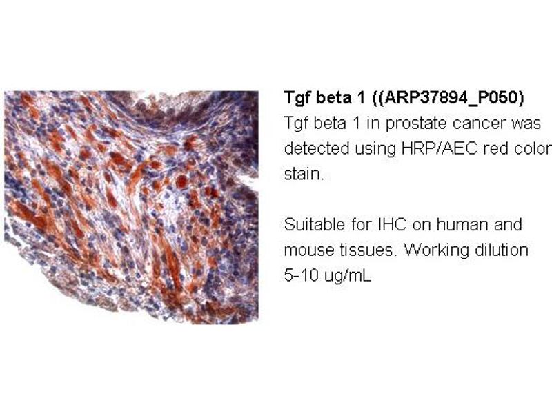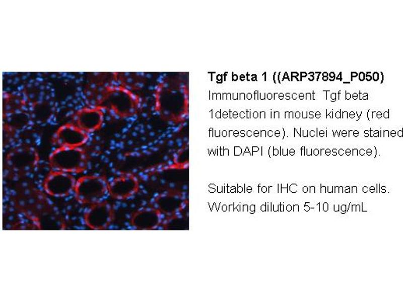 - The immunogen is a synthetic peptide directed towards the middle region of mouse TGFB1
