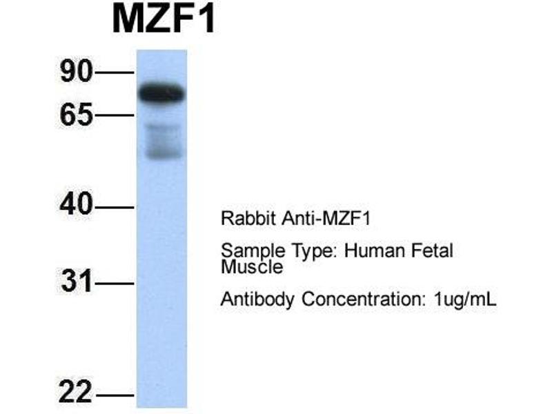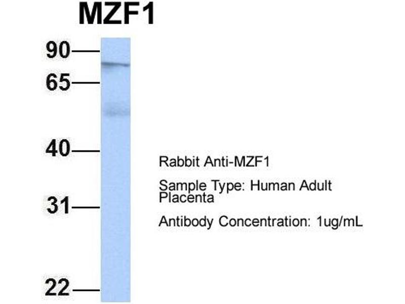 - This is a rabbit polyclonal antibody against MZF1. It was validated on Western Blot using a cell lysate as a positive control.