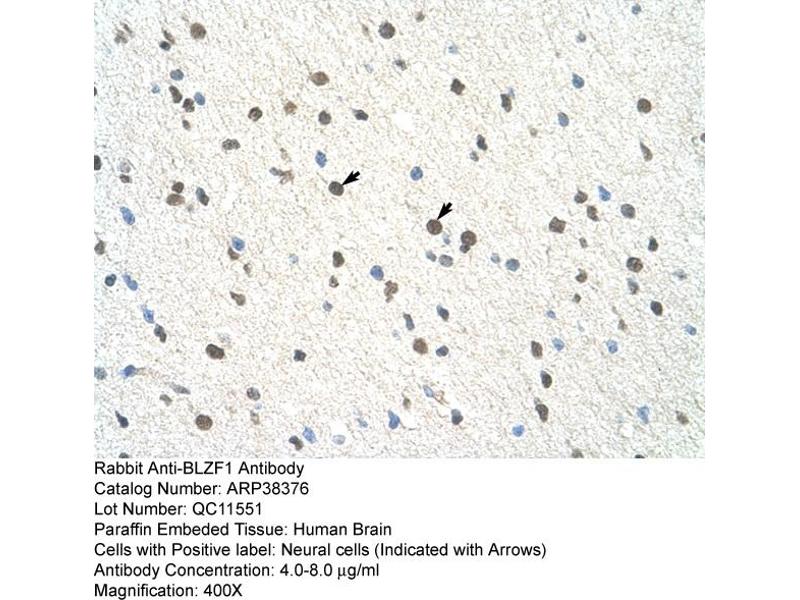 - The immunogen is a synthetic peptide directed towards the C terminal region of human BLZF1