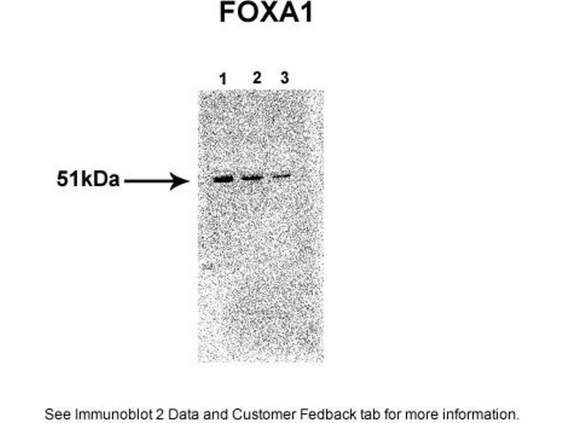 - The immunogen is a synthetic peptide directed towards the N terminal region of human FOXA1