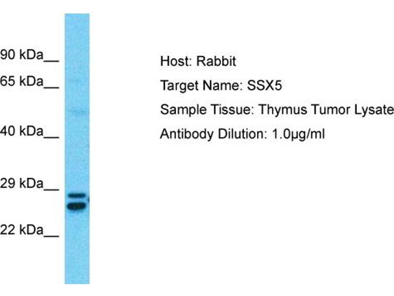 Der Kaninchen Polyklonal anti-SSX5 Antikörper (ABIN2780700) detektiert spezifisch SSX5 in WB.