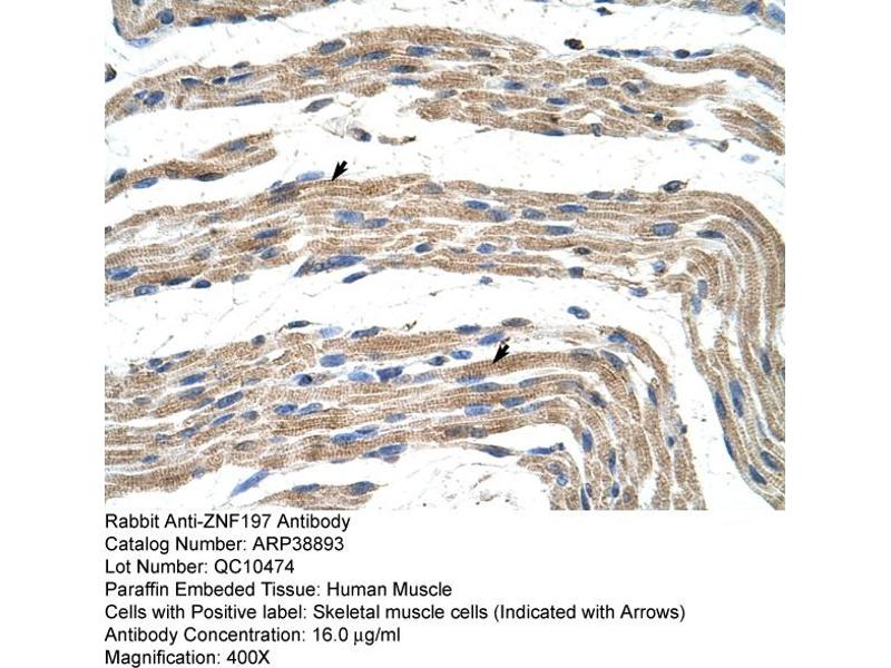 - This is a rabbit polyclonal antibody against ZNF197. It was validated on Western Blot and immunohistochemistry.