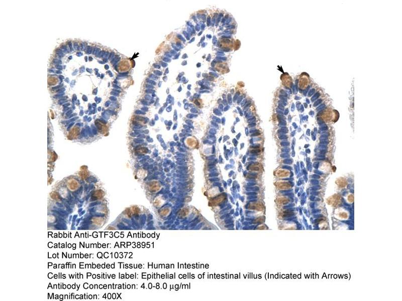 - This is a rabbit polyclonal antibody against GTF3C5. It was validated on Western Blot and immunohistochemistry.