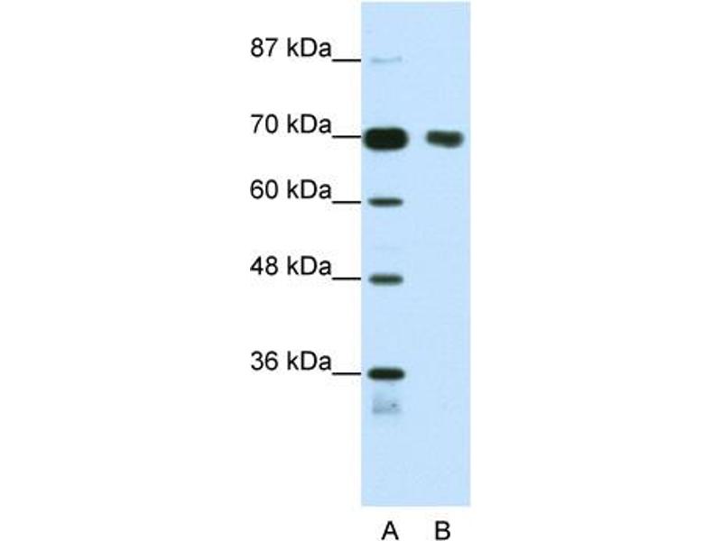 TRIM32 is a member of the tripartite motif (TRIM) family. The TRIM motif includes three zinc-binding domains, a RING, a B-box type 1 and a B-box type 2, and a coiled-coil region. TRIM32 localizes to cytoplasmic bodies. The protein has also been localized to the nucleus, where it interacts with the activation domain of the HIV-1 Tat protein. The Tat protein activates transcription of HIV-1 genes.The protein encoded by this gene is a member of the tripartite motif (TRIM) family. The TRIM motif includes three zinc-binding domains, a RING, a B-box type 1 and a B-box type 2, and a coiled-coil region. The protein localizes to cytoplasmic bodies. The protein has also been localized to the nucleus, where it interacts with the activation domain of the HIV-1 Tat protein. The Tat protein activates transcription of HIV-1 genes.