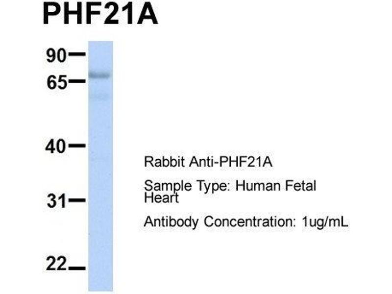 - This is a rabbit polyclonal antibody against PHF21A. It was validated on Western Blot using a cell lysate as a positive control.