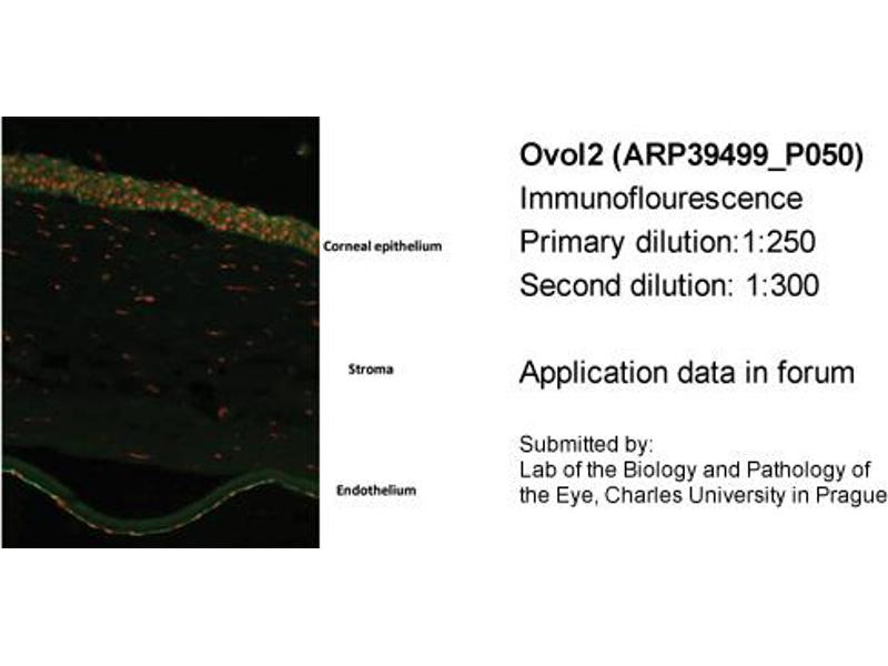 - The immunogen is a synthetic peptide directed towards the N terminal region of human OVOL2
