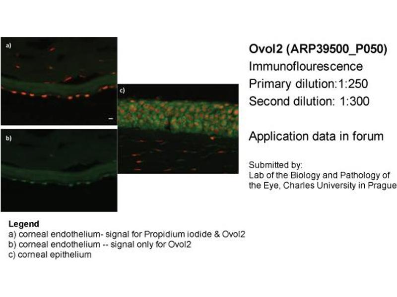 - The immunogen is a synthetic peptide directed towards the middle region of human OVOL2
